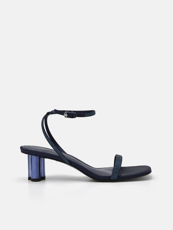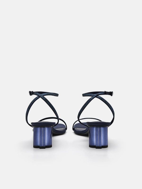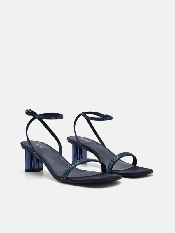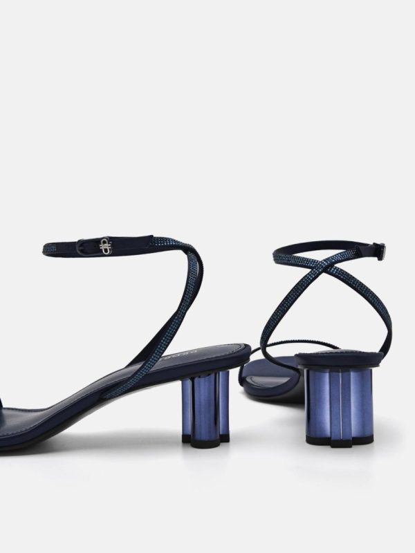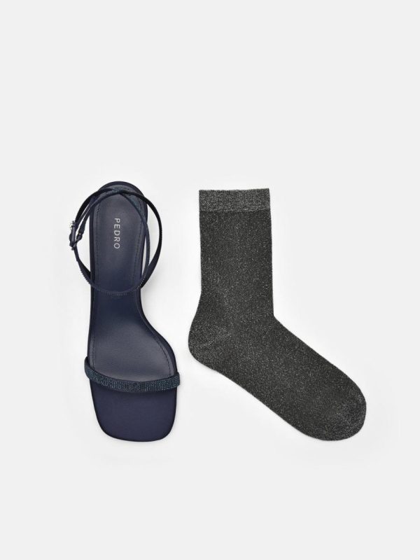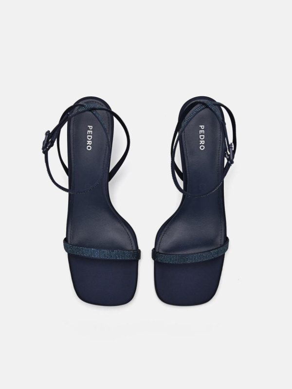 Introducing the PEDRO Icon Satin Heel Sandals in dark purple, a fusion of individualistic style and timeless elegance. Crafted from satin, they feature a sleek, thin strappy upper and a squared toe, creating a modern and sophisticated silhouette. The highlight is the high-shine silver heel meticulously shaped into the brand’s iconic monogram, adding a distinctive touch. With an ankle closure ensuring a secure fit, these sandals effortlessly blend luxury and comfort, making them a standout choice for the cosmopolitan wardrobe.