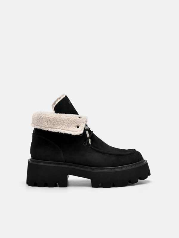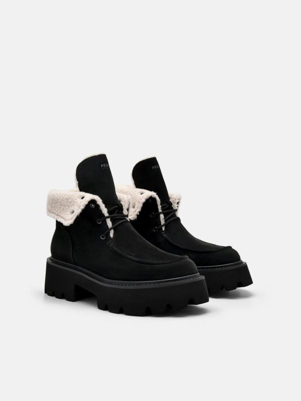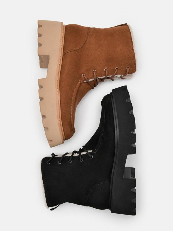 Conquer winter weather with confidence in the Edita Ankle Boots in classic black, where rugged outdoor performance meets downtown style. These ankle-height boots feature a substantial lugged sole that provides exceptional grip and support on any surface, keeping you steady and comfortable all day long. Experience premium comfort with the plush faux fur lining that wraps your feet in cozy warmth while maintaining a sleek, fashionable profile. The artisanal braided laces add a touch of craftsmanship, creating the perfect blend of practical function and urban style that makes these boots a must-have for your cold-weather wardrobe.