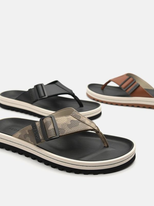 Everyday style and all-day comfort brilliantly merge with the George Thong Sandals. Make a bold statement with the buckle adorned on the strap for an instant elevation of class and sophistication to your look. Featurinf a padded footbed for added comfort, these sandals are the ideal companions for a casual day out.