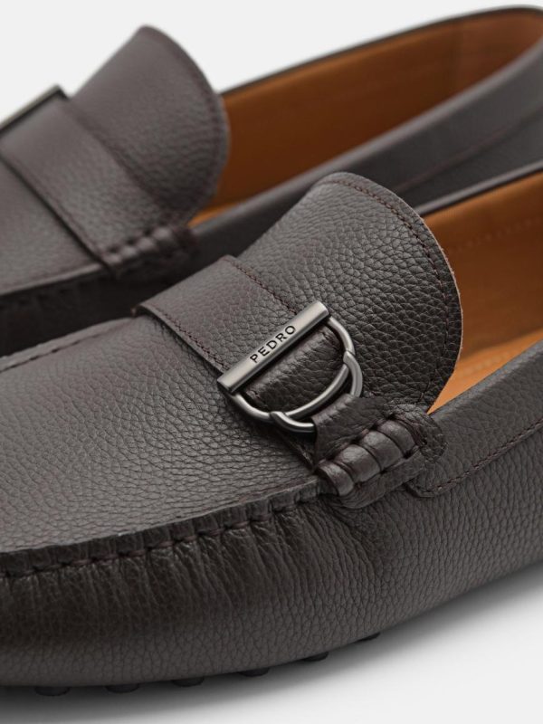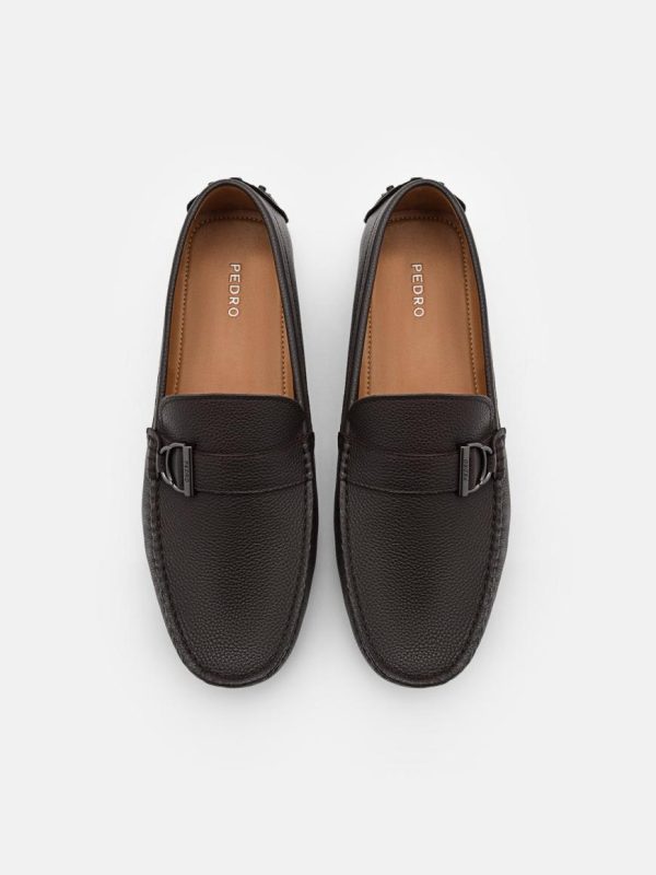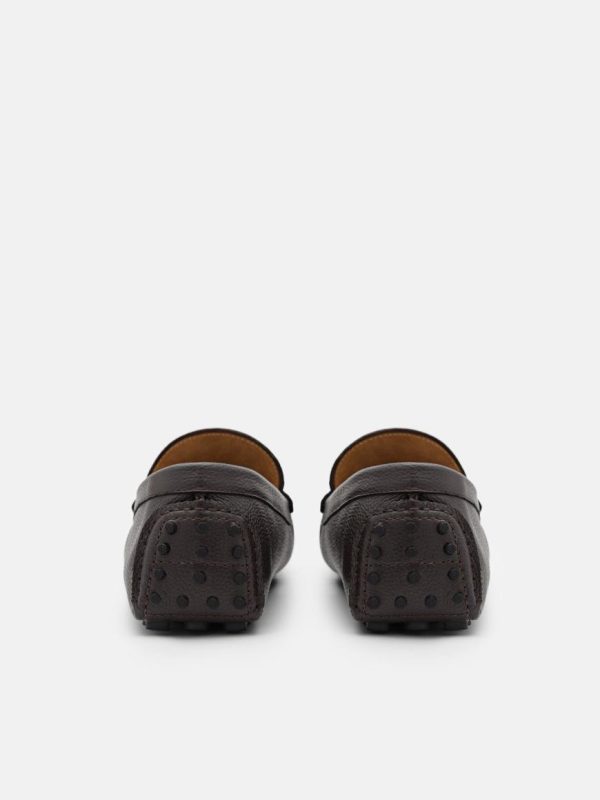 Elevate your style with the sophisticated Jackson Leather Driving Shoes in rich dark brown. Crafted from premium embossed cow leather, these shoes deliver exceptional comfort and a polished look perfect for smart casual occasions. The sleek buckle hardware adds a refined touch, while the durable pebbled outsole provides reliable traction and lasting wear.