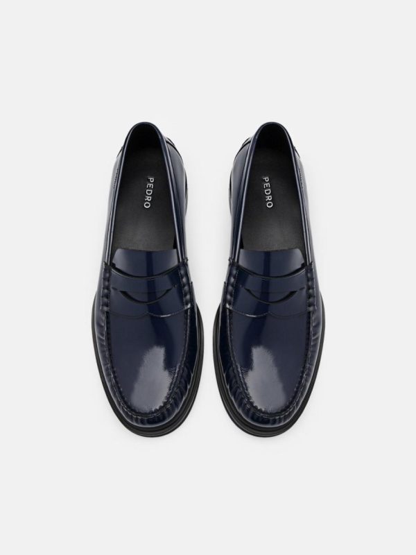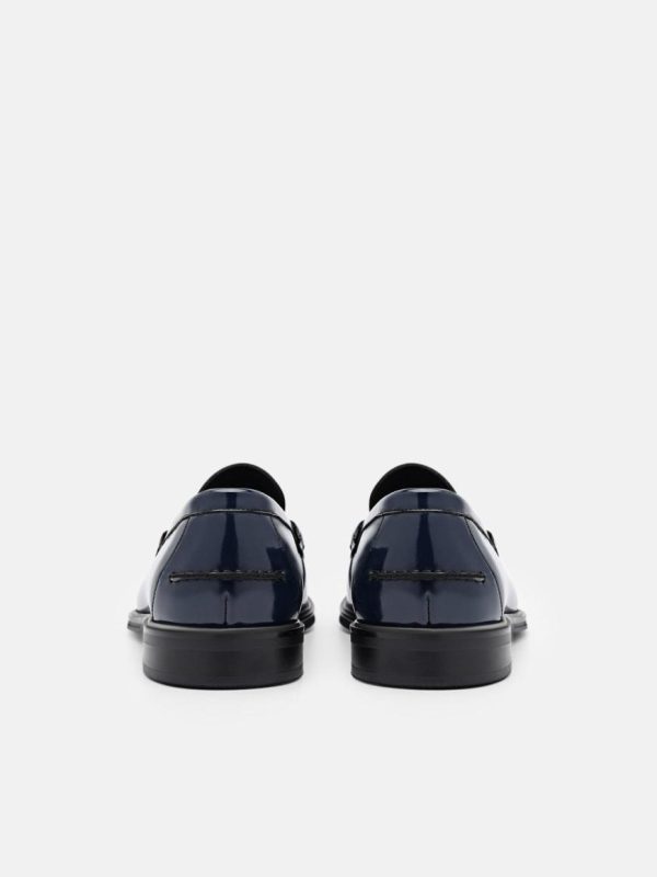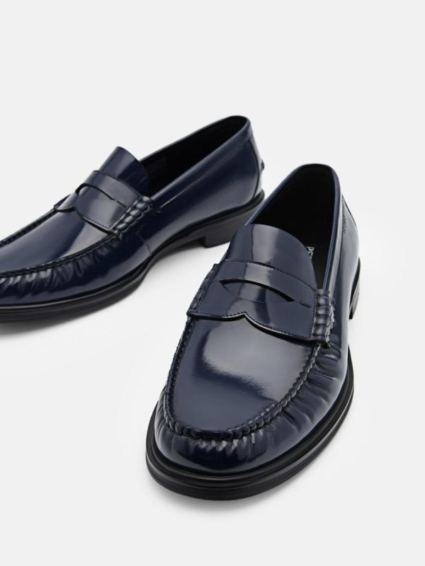 Elevate your professional wardrobe with the Leather Penny Loafers in navy. Meticulously crafted from boxed calf leather, the luxurious material ensures a long-lasting, durable finish fit for the modern man. The timeless penny loafer silhouette has been refined with a ruched design, adding an extra touch of sophistication to your workwear ensembles. Perfectly suited for office wear, these loafers combine comfort and style, so you can remain focused on your work while exuding confidence with every step.