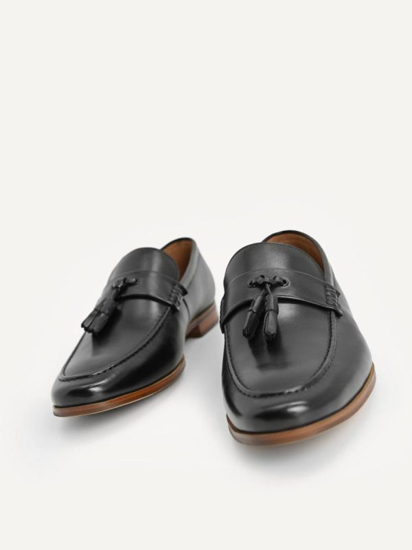 These pair of loafers are defined by both smooth burnished calf leather and printed checkered with a tassel embellishment for an opulent look. They can elevate any formal ensembles with style effortlessly.