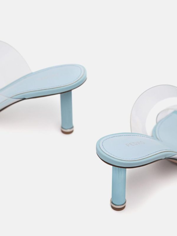This pair of Light Blue Vinyl Double Strap Heel Sandals is perfect for those looking for footwear that is both statement-making and versatile. It is characterised by a square toe-box, textured architectural heel and transparent vinyl top straps that glisten at all angles. Whether you are dressing down or up, this pair is guaranteed to up your style game.