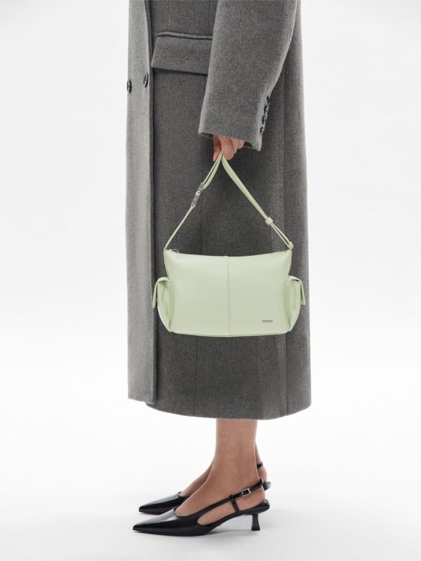 Showcasing a modern geometric pattern with an adjustable shoulder strap, the Cassi Shoulder Bag in fresh light green delivers contemporary style while maintaining everyday functionality. Its supple construction offers all-day comfort, while smart side compartments keep your essentials organized and within easy reach. Perfect for pairing with a structured blazer and tailored trousers for a polished, put-together look.