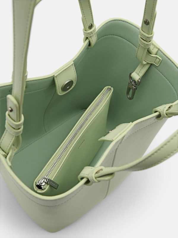 A versatile accessory designed to complement a dynamic lifestyle, embrace effortlessness with the Zinnia Tote Bag in light green. Its clean and slouchy shape effortlessly merges style with functionality, while the removable and adjustable shoulder strap offers customizable carrying options. With a convenient magnetic closure and an additional zipped pouch inside, keeping your essentials close at hand has never been easier.