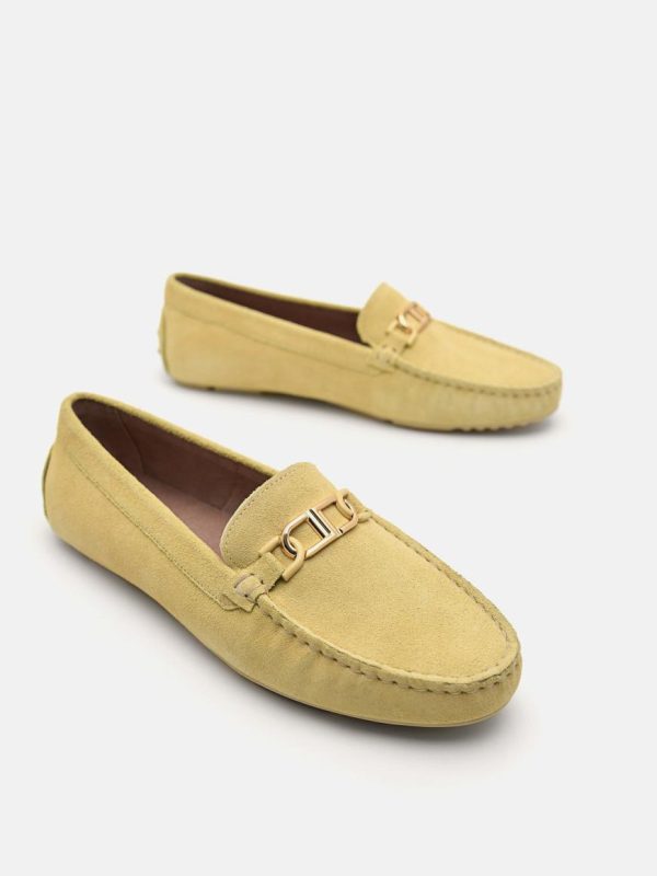Achieve that androgynous look with these pair of leather Driving Shoes. They are decorated with interlocked gold links that balance out the masculinity with sophistication.