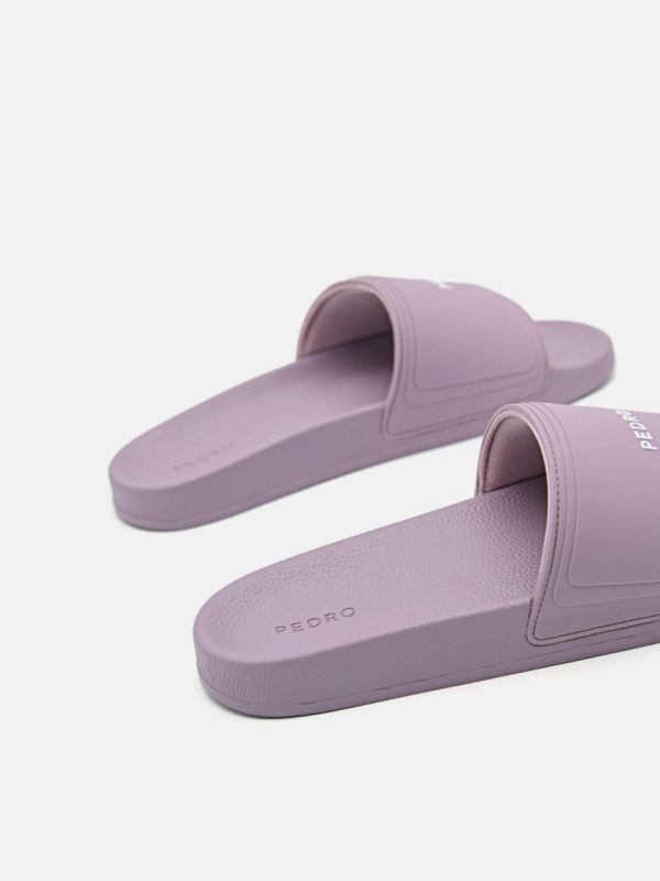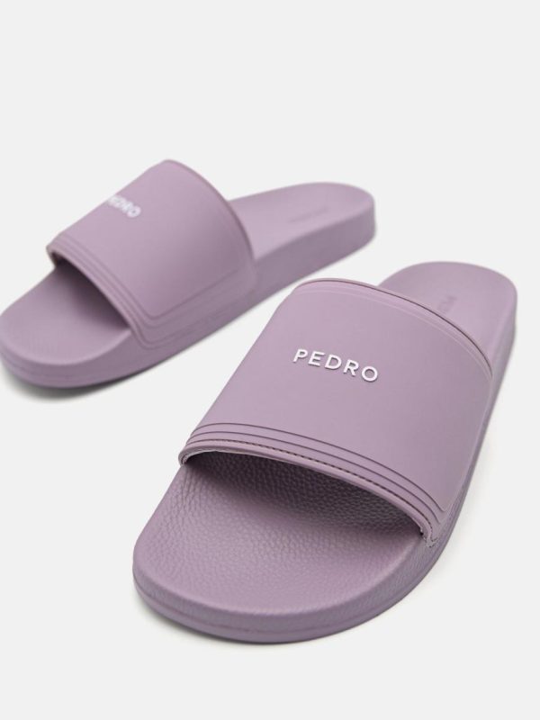 A more edgy take on the standard slide with a touch of the PEDRO bon ton in a neutral lilac. Perfect for lounging on carefree days, the wide band on the toes and an ergonomic insole offer comfort with a laid back contemporary vibe. Whether for poolside pleasures or simply a quick run to the store, finish off your warm weather look with an embossed signature for a fashionable touch.