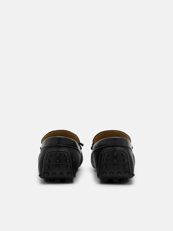 Experience the ultimate combination of sophisticated style and everyday durability with these black nylon driving shoes. The sleek modern design features an elegant bow accent that elevates your casual look, while the convenient slip-on construction ensures all-day comfort and easy wearability.