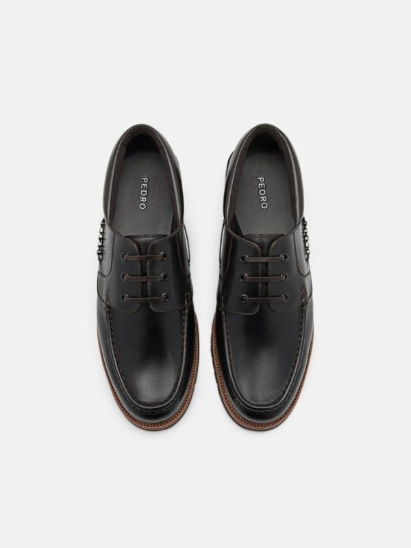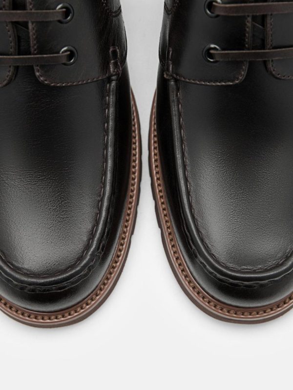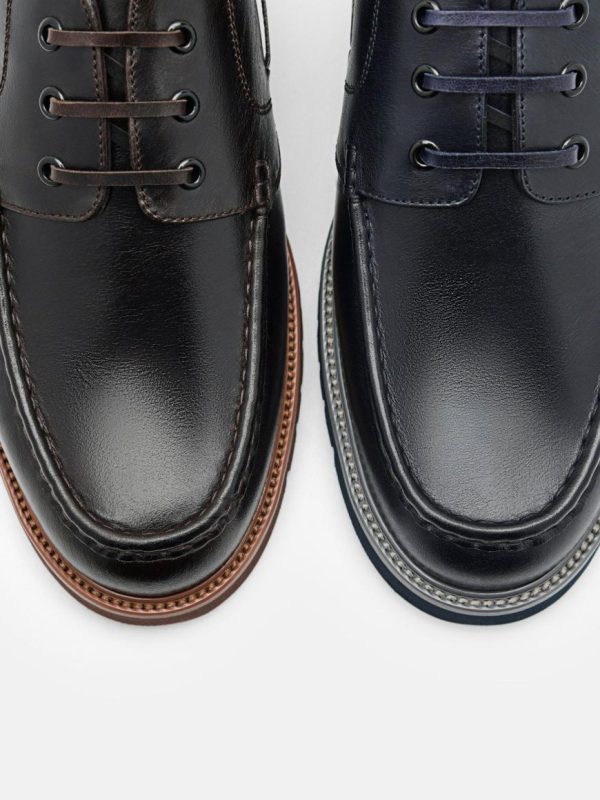 Experience the perfect blend of timeless style and modern sophistication with our Saxton Leather Derby Shoes. These expertly crafted shoes feature rich burnished calf leather that develops a beautiful patina over time, complemented by distinctive moc-toe detailing that adds character to the classic design. The substantial tonal outsole provides both contemporary appeal and reliable durability, making these the ideal choice for men who appreciate both style and substance in their footwear.