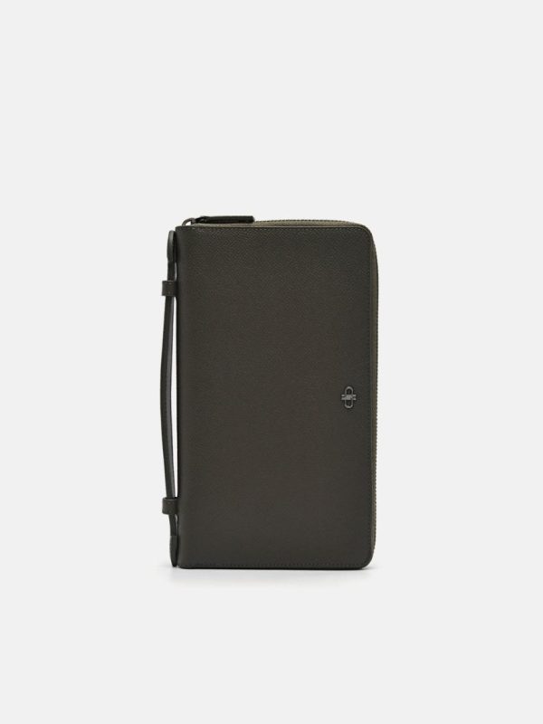 A stylish leather companion with ample storage, the PEDRO Icon Leather Travel Organiser in military green functions as a convenient and modern carrier for your travelling needs. Made specifically for the modern gentleman and crafted of embossed cow leather to sit comfortably in the hands or bag, it features slots and a zippered pouch for cards and currency.