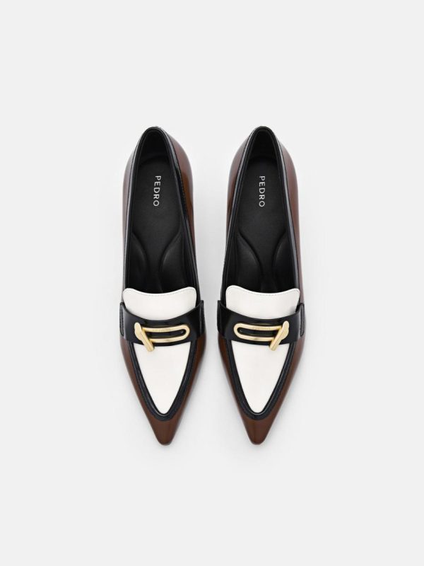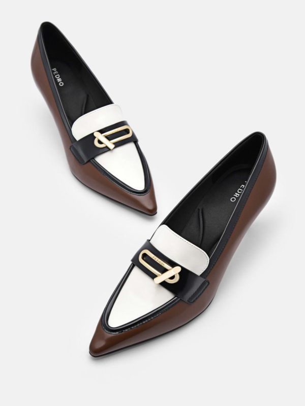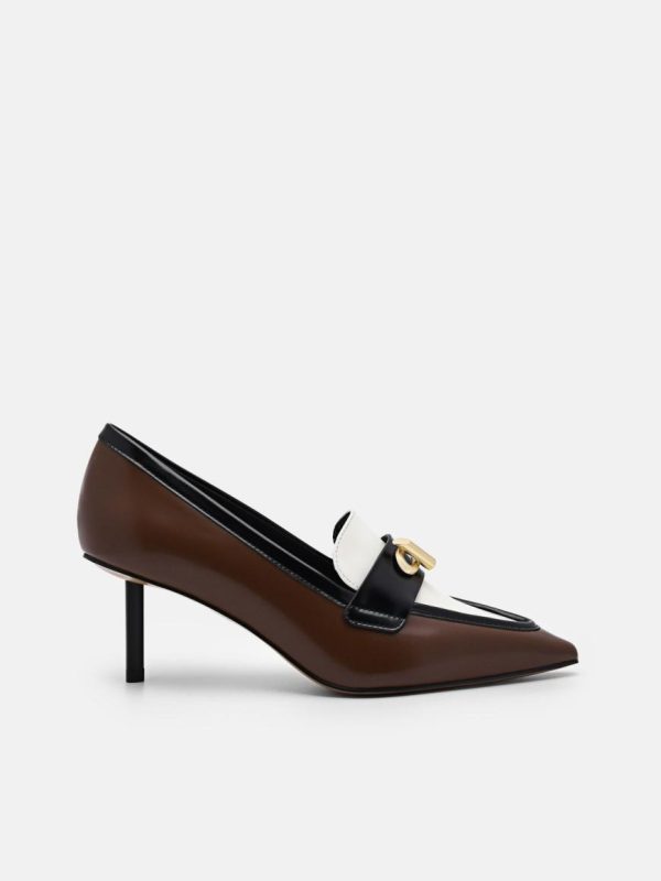 Professional just got more polished with the Brie Leather Heel Pumps in multicolour. Featuring a modest heel, a pointed toe, and goldtone accent across the vamp in boxed calf leather, this is a classy heel you will find yourself reaching for time after time.