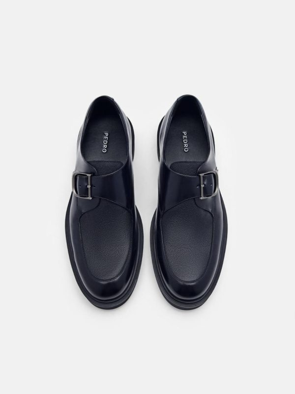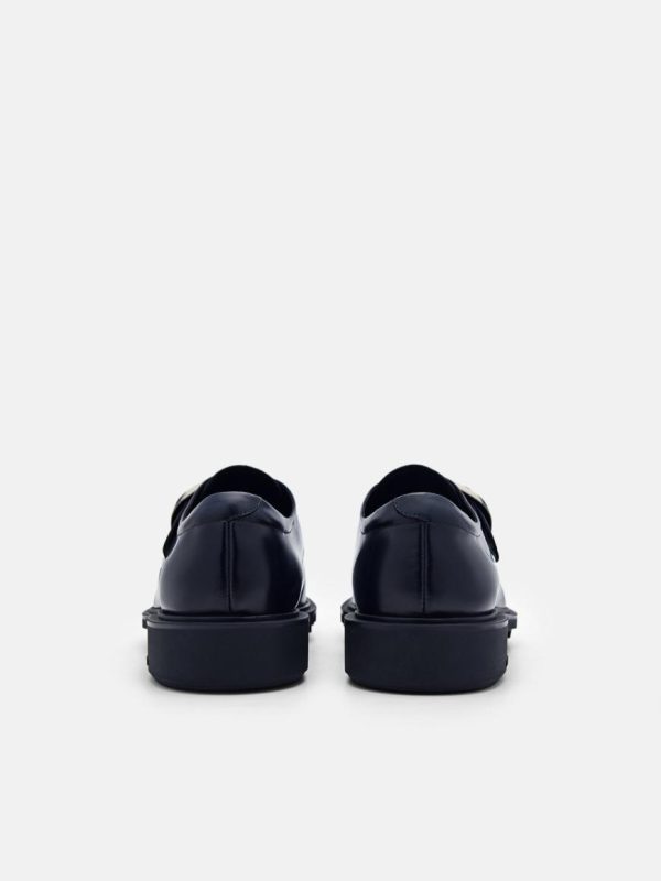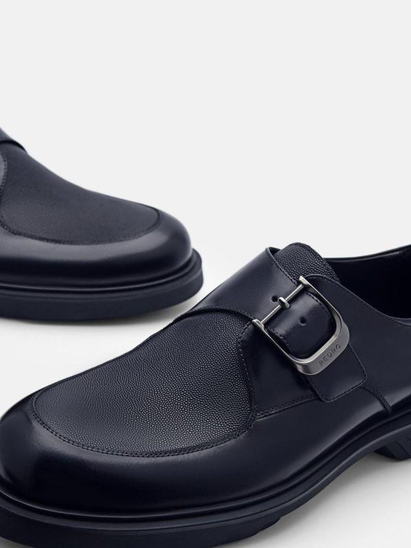 Whether you are dressing up for a formal event or adding a touch of suave to your everyday look, boast a sleek and polished appearance that commands attention with the Helix Leather Monkstrap Shoes in navy. Crafted from burnished calf leather, the monkstrap fastening is adorned with a striking metallic buckle for a touch of bold visual interest that sets you apart from the crowd.