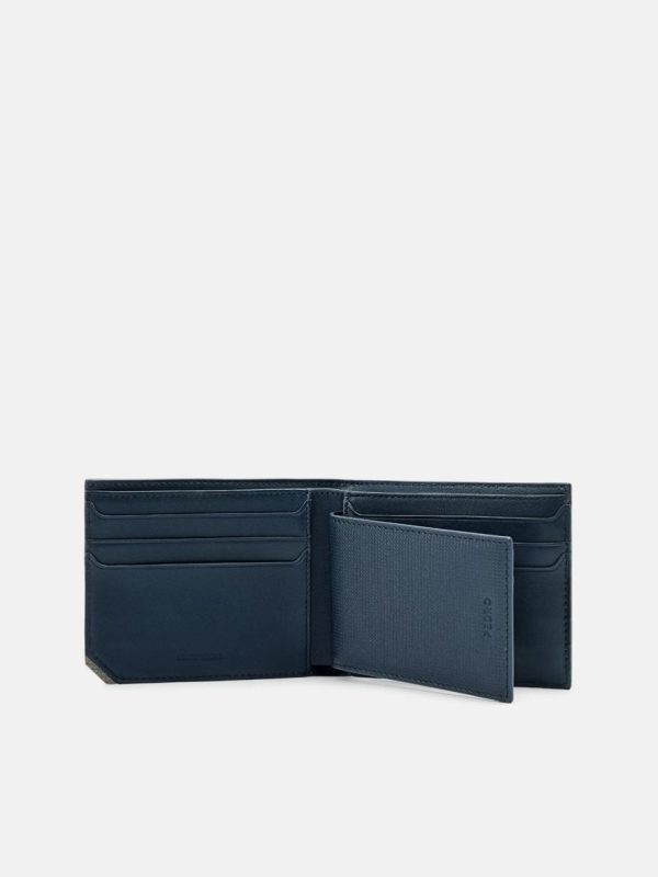 Perfectly blending versatility and sophistication, the Leather Bi-Fold Flip Wallet with Insert in navy is designed for both daily functionality and elevated style. Crafted from calf leather, its sleek bi-fold design features a subtle hardware accent and a finely embossed texture, ensuring a luxurious tactile experience. This wallet includes a convenient insert for added organization, alongside ample card slots and a spacious cash compartment, making it ideal for seamless transitions between work and leisure.