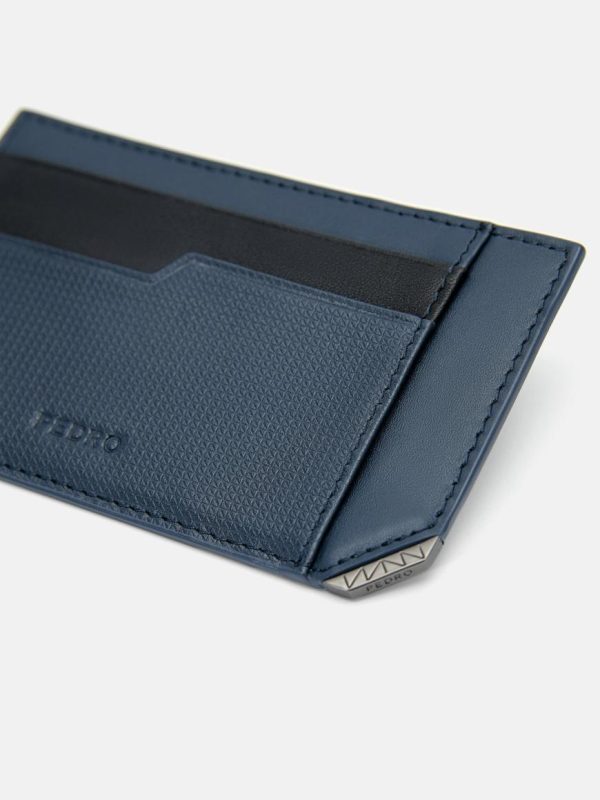 Perfectly designed for the contemporary individual, the navy Leather Card Holder in Pixel combines practicality with sophisticated style in every detail. Crafted from embossed calf leather, it features a unique notched shape that sets it apart from the ordinary. The Pixel cross-hatched design and two-tone finish add a modern, textured appeal, while subtle hardware details enhance its refined aesthetic. Sleek and minimal, this card holder offers ample space for your essentials, making it the ideal accessory for those who value both functionality and elegance.