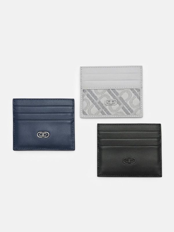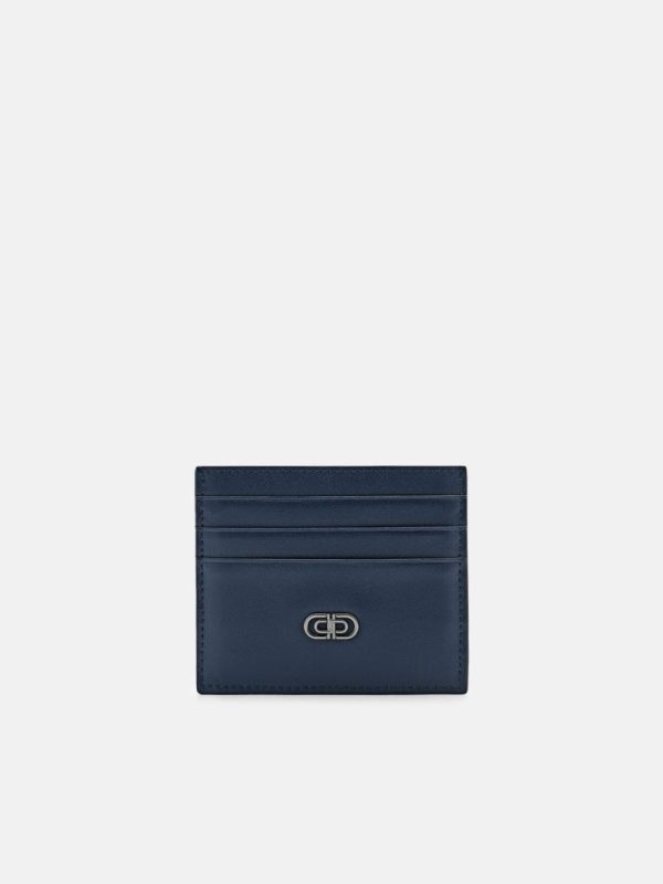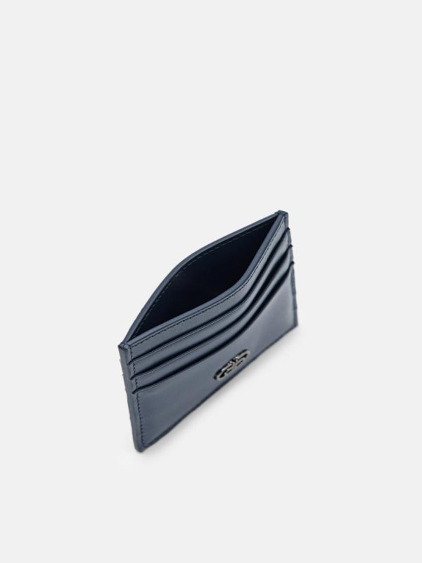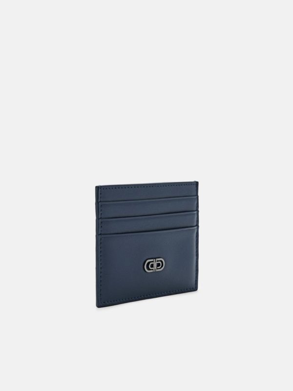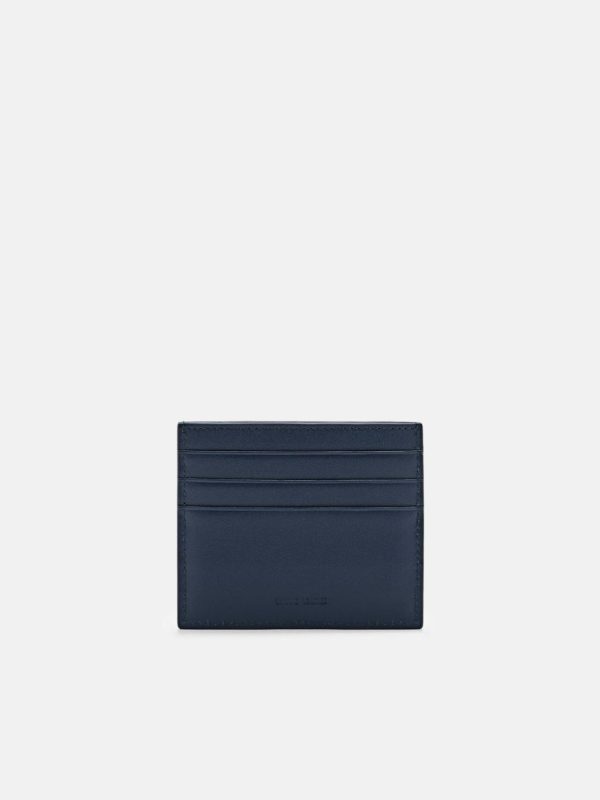 Ideal for streamlined everyday carry, this sophisticated navy card holder from PEDRO features premium calf leather construction with distinctive Icon monogram hardware. The smart design includes four card slots and a central slip pocket to securely organize your essential cards, cash, and receipts in a compact, travel-friendly format.