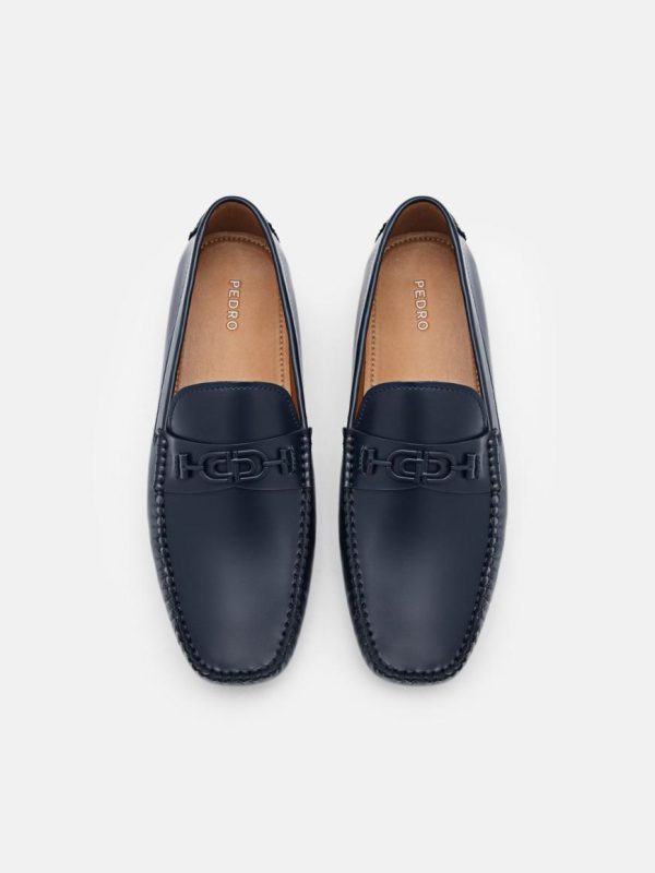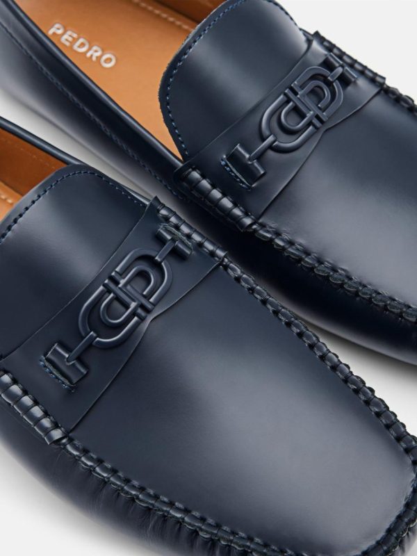 Navy PEDRO Icon Leather Driving Shoes for Men