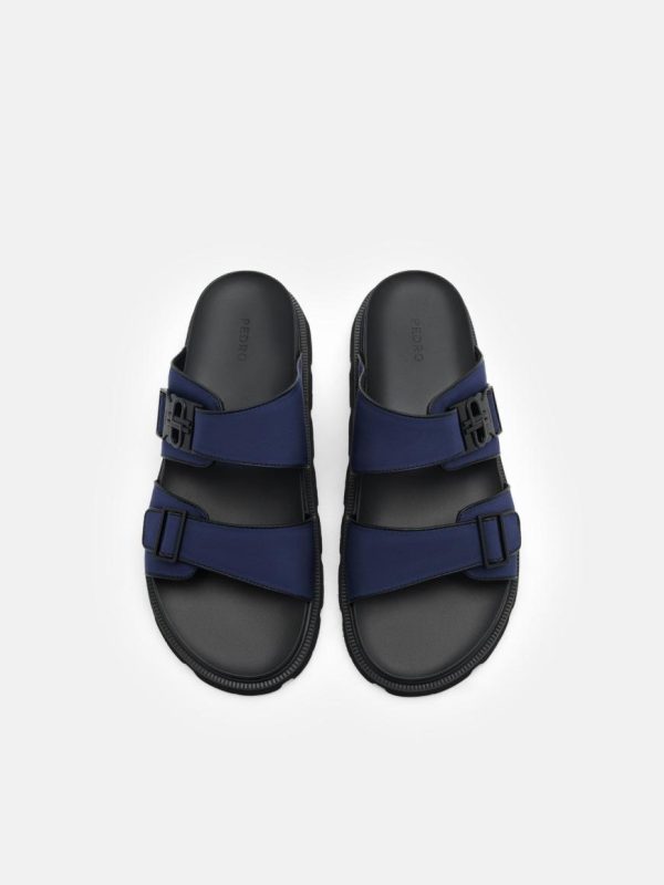 Experience the perfect blend of style and everyday functionality with the PEDRO Icon Slide Sandals in classic navy. These premium sandals feature a distinctive double-strap design with sophisticated monogram hardware that elevates your casual look. The generously padded footbed delivers exceptional comfort for all-day wear, while the rugged lugged outsole ensures reliable traction and stability during your summer adventures.