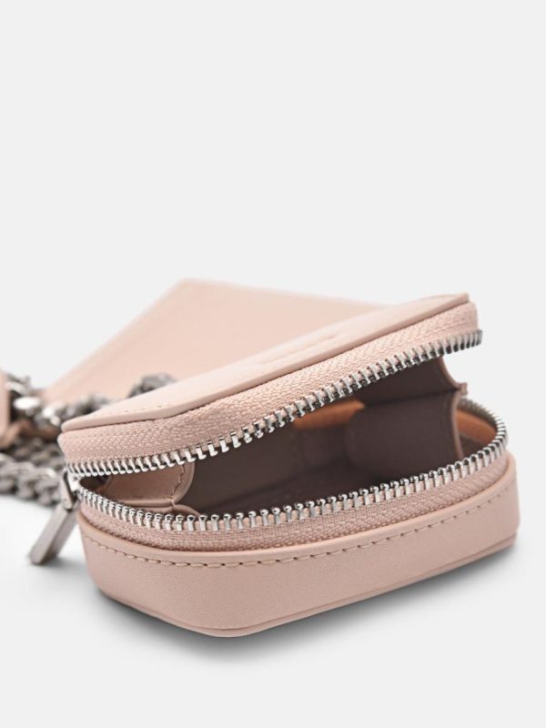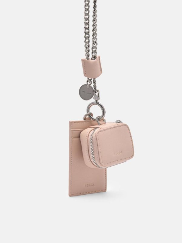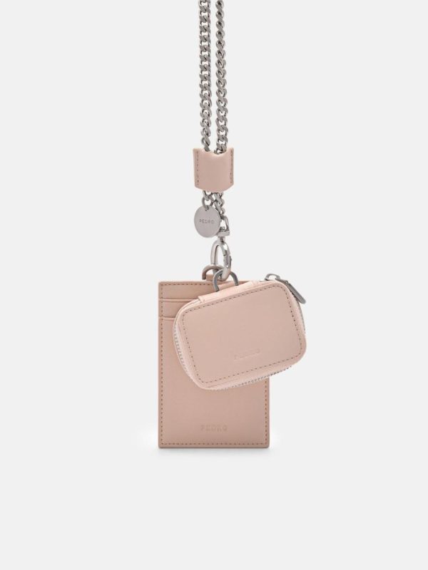 Add a touch of sophistication to your everyday look when carrying the Leather Lanyard with Card Holder in nude. A contemporary and bold statement piece, a removable pouch offers versatility and convenience, while the chainlink sling, adorned with a charming accent, adds a playful and fashionable twist to the design.