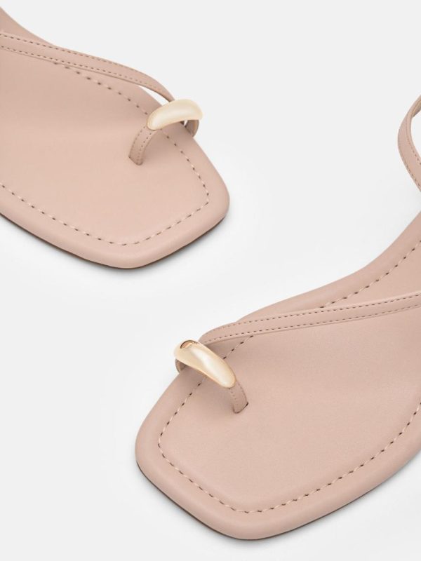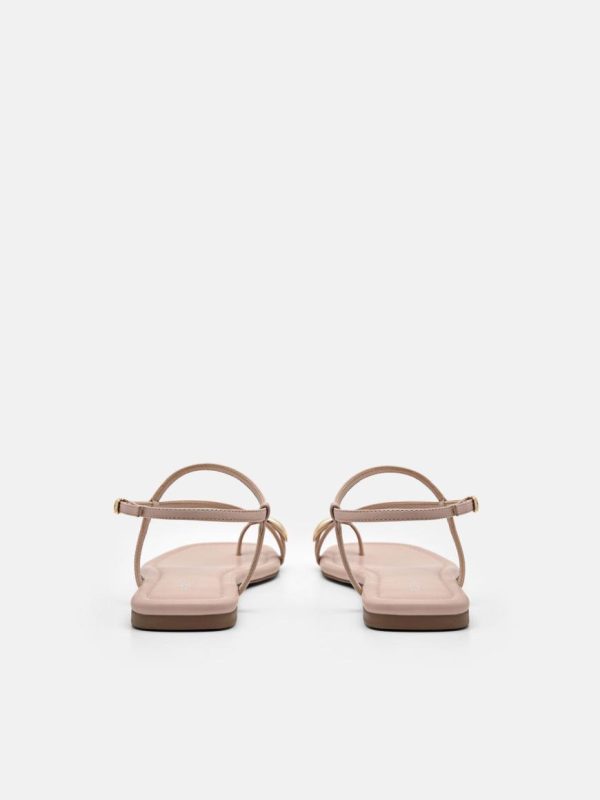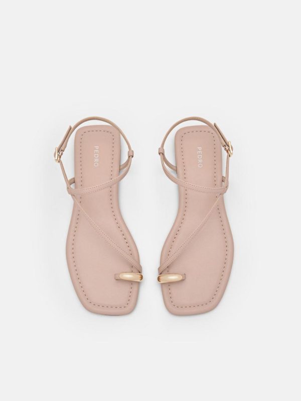 Whether paired with flowing skirts or cropped trousers, make a timeless and chic statement perfect for any occasion with the Lia Toe Ring Sandals in nude. Featuring a flat profile adorned with a beautifully textured strappy upper for an effortless elegance, a toe ring design accented with metallic detailing adds a touch of refined charm. Complete with a slingback buckle for a secure fit.