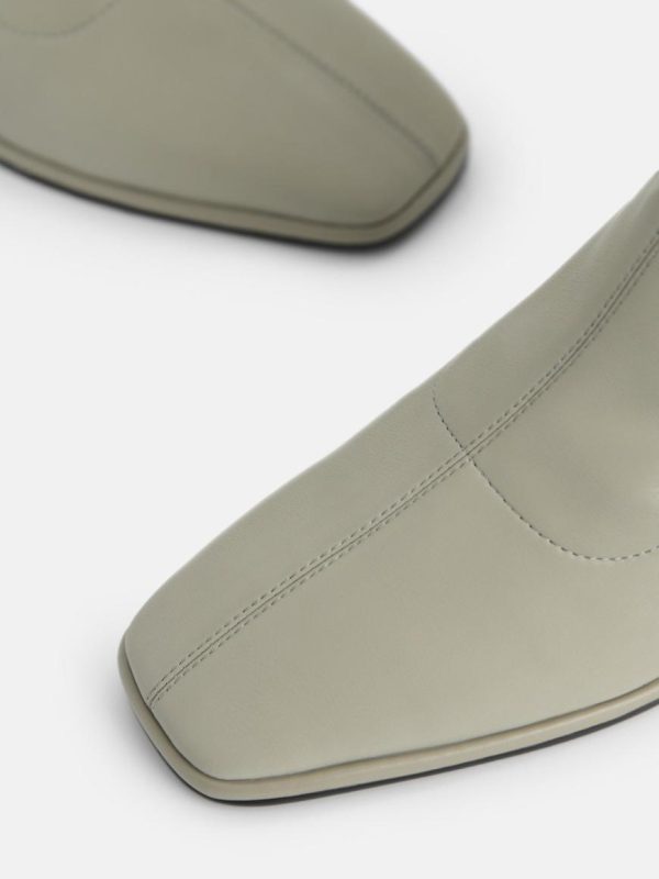 Minimalist and stylish natural PU ankle boots in olive with heels and a zipper closure – great for urban girls night out.