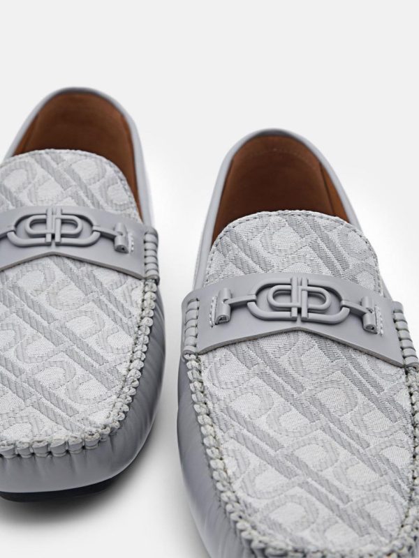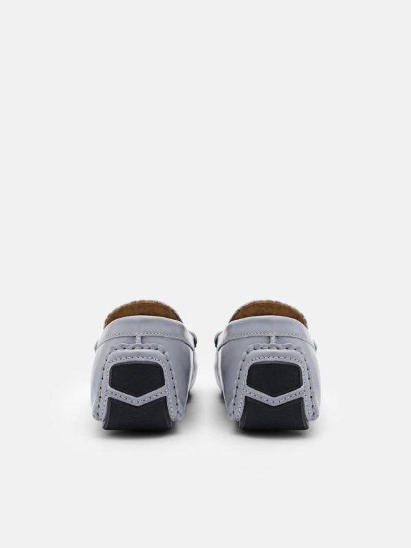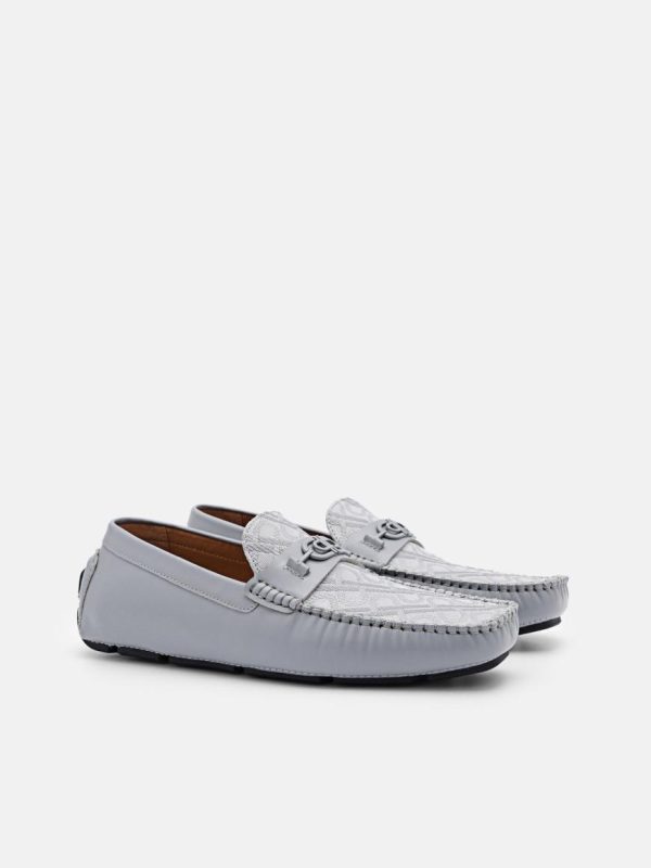 Experience the perfect blend of timeless sophistication and contemporary style with the PEDRO Icon Leather Driving Shoes in sophisticated grey. Expertly crafted from premium boxed calf leather, these shoes feature a striking contrast upper fabric that delivers exceptional texture and visual depth. The signature monogrammatic Icon hardware adds a distinctive urban edge, creating a smart-casual design that effortlessly transitions from relaxed weekend wear to polished elegance.