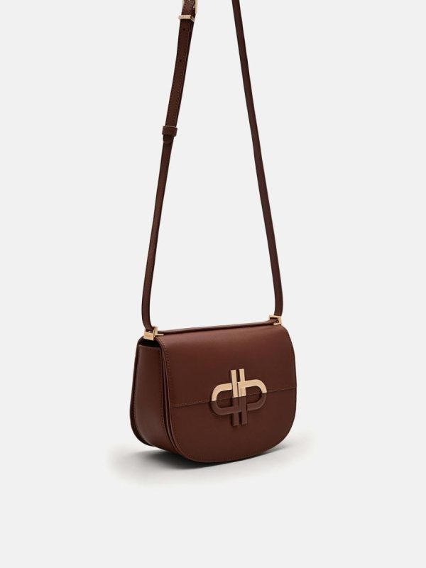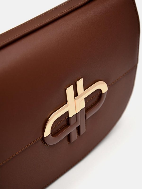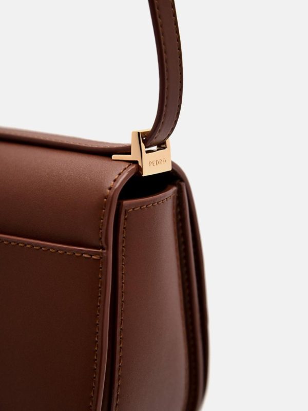 Elevate your everyday style with the sophisticated PEDRO Icon Leather Shoulder Bag in rich dark brown. This contemporary take on a classic design combines premium cow leather with luxurious suede accents, creating a stunning tactile experience. Featuring elegant gold monogram detailing and precision stitching, this bag delivers both timeless appeal and practical functionality for the modern woman.