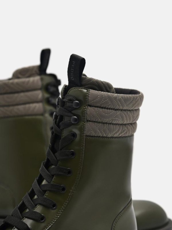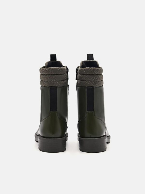 Experience the premium feel and exceptional comfort of genuine leather with the PEDRO Icon Leather Ankle Boots. Crafted from durable military green boxed calf leather enhanced with nylon reinforcement, these boots are built to conquer any terrain while maintaining sophisticated style and everyday comfort.