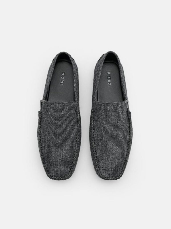 Experience elevated style with our grey Fabric Driving Shoes, crafted with premium fabric construction that delivers exceptional comfort and a sophisticated look. The rich graphite finish with subtle metallic accents creates a refined appearance, while the sculptural design elements make a distinctive style statement. These slip-on driving shoes feature an easy-wear design and a roomy square toe box for all-day comfort.