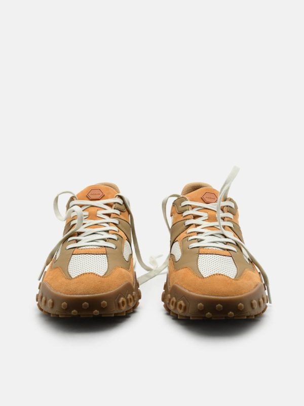 Engineered for the modern adventurer who demands both urban style and outdoor performance, these mustard suede sneakers deliver exceptional versatility. The advanced honeycomb outsole delivers unbeatable grip on any surface, while the innovative drawstring lacing system provides a customized, secure fit that stays locked in place. The breathable mesh upper ensures maximum comfort and airflow whether you’re navigating city streets or exploring nature trails.