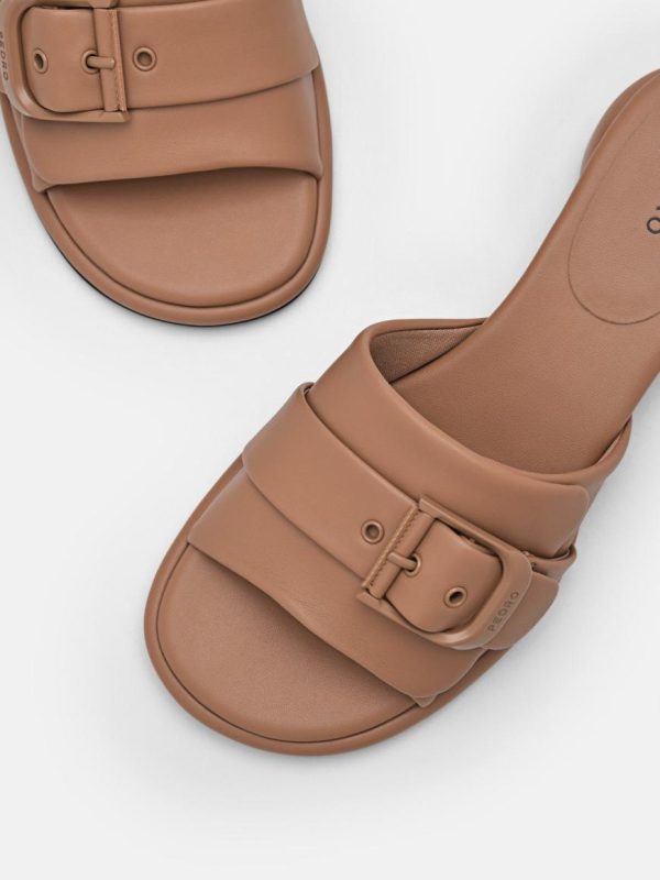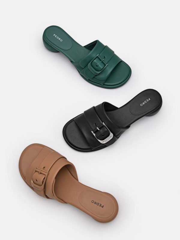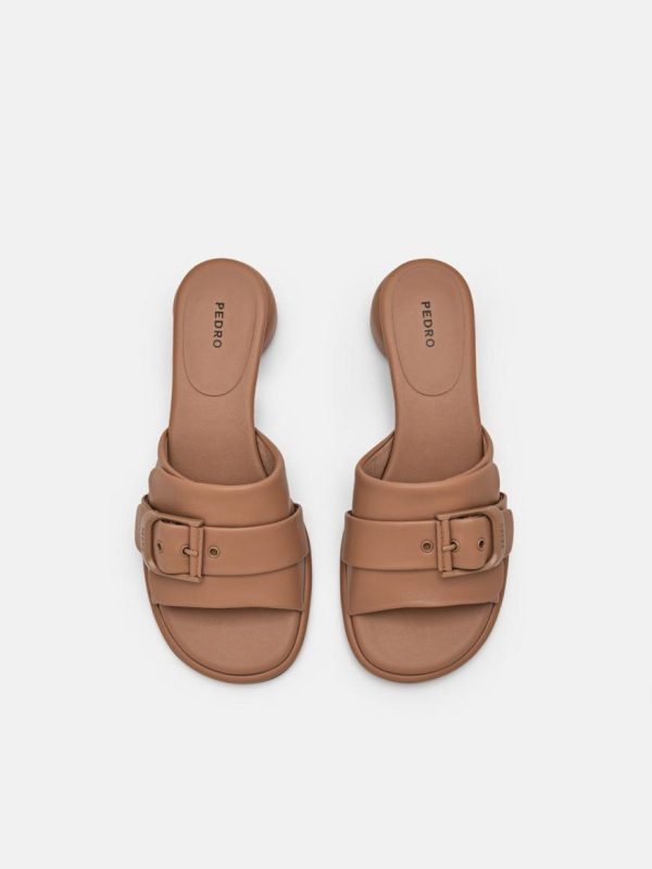 Experience the perfect blend of style and comfort with these sophisticated camel sandals. The Helix Heel Sandals feature a sleek single-strap design with an elegant oversized buckle, offering effortless slip-on wearability. The contemporary rounded heel provides just the right amount of elevation for all-day confidence, making these sandals your go-to choice for both casual outings and dressed-up occasions.