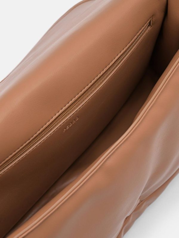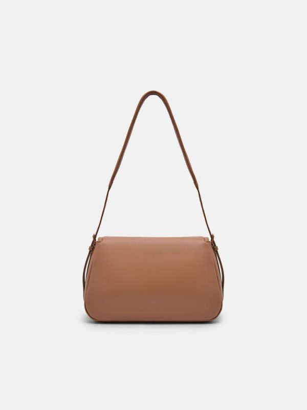 Elevate your everyday style with the chic Helix Shoulder Bag in warm camel. Featuring a beautifully puffed construction that creates dimension with soft rounded edges, this bag combines modern sophistication with practical design. The distinctive envelope flap with signature buckle hardware adds a touch of elegance while maintaining a versatile look that transitions effortlessly from day to night.