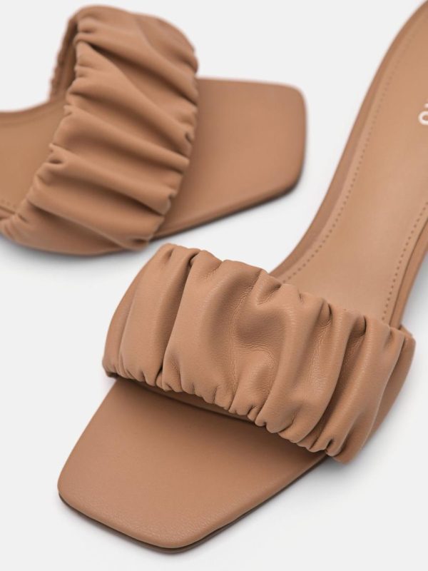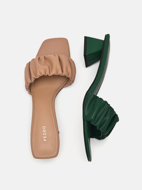 Introduce these elegant and effortless mules into your wardrobe. With a slanted block heel and classic ruched upper, these shoes are great when you need an instant style boost.
