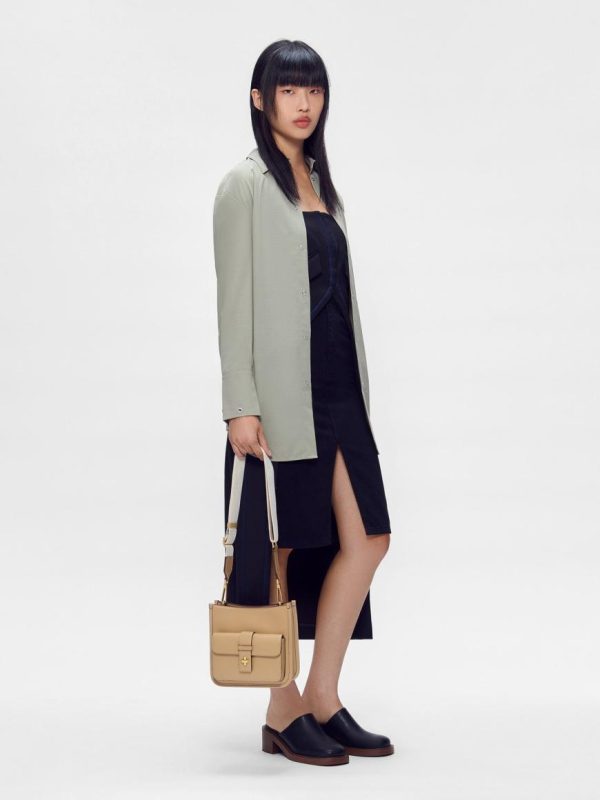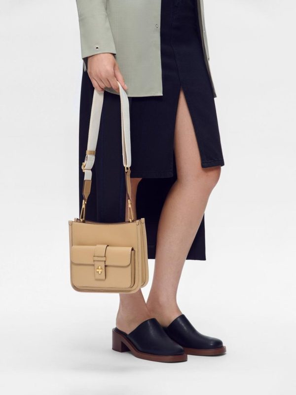 Classy and casual, find yourself reaching for the Brie Squared Shoulder Bag in sand time after time. Featuring a structured interior to keep your essentials safe, as well as an exterior pouch for easy access, the bag is accented by metallic hardware for a hint of elegance.