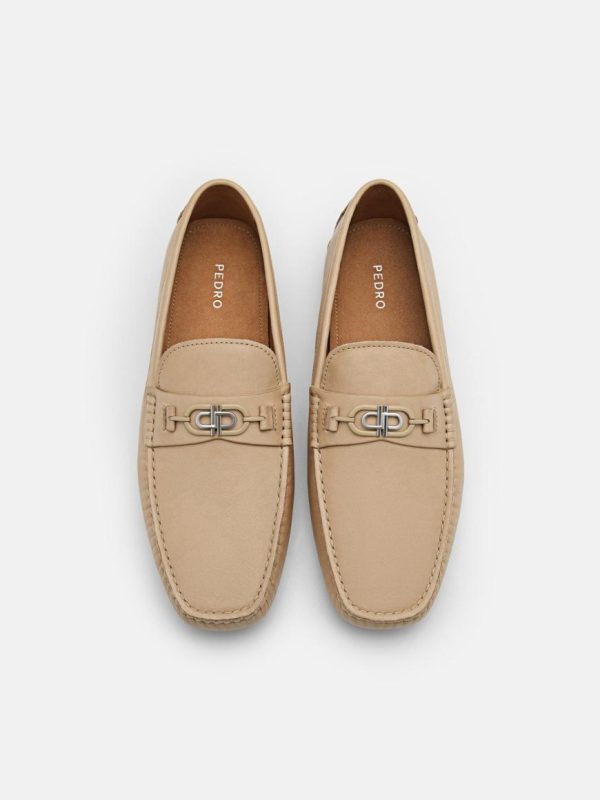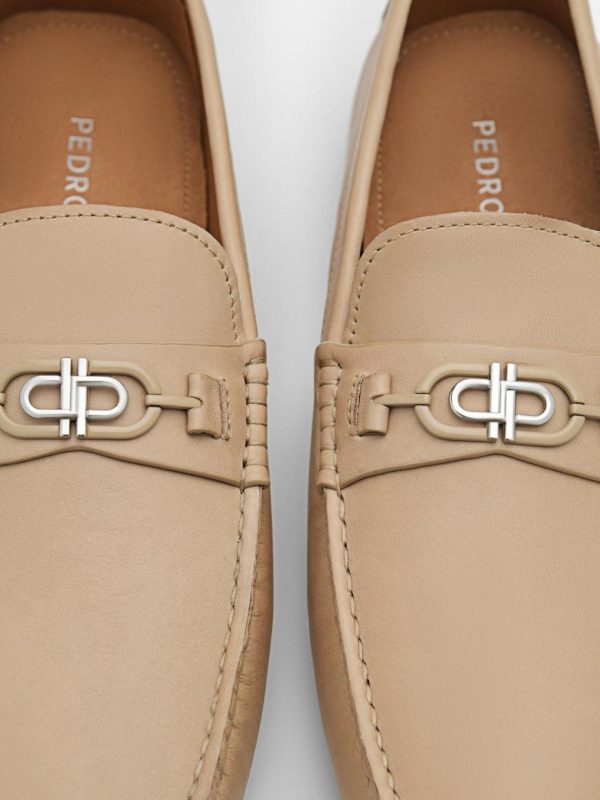 Both timeless and refreshingly modern, unleash urban charisma with the PEDRO Icon Leather Driving Shoes in sand. Crafted from boxed calf leather, a contrasting upper fabric provides a striking combination of textures and visual appeal while a monogrammatic Icon hardware adds urban edge to a smart casual design that bridges the gap between laid-back cool and polished elegance.