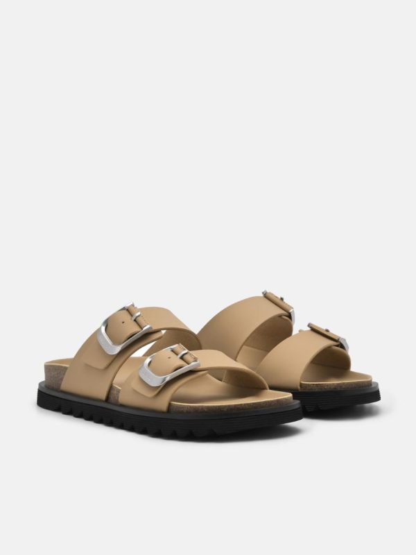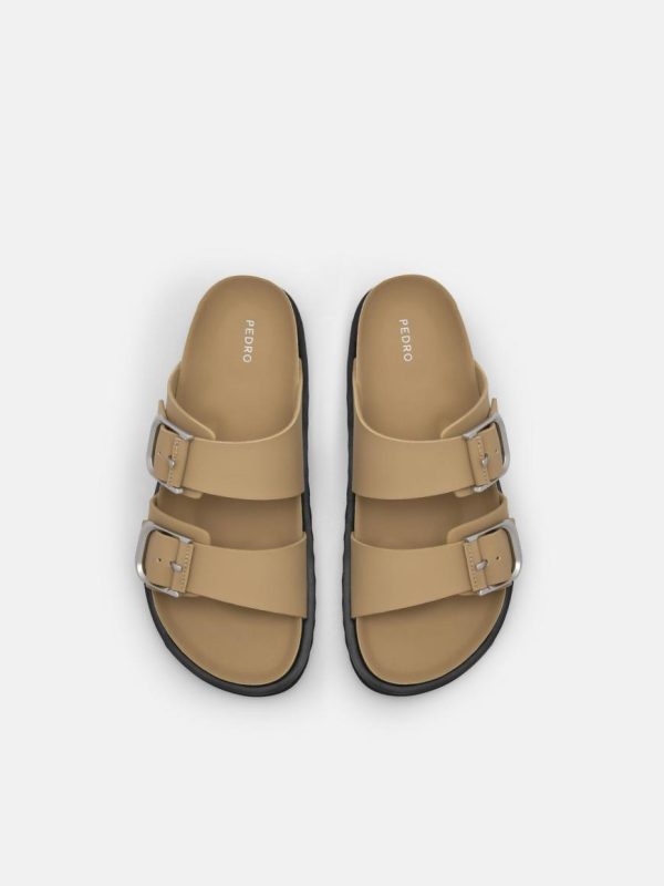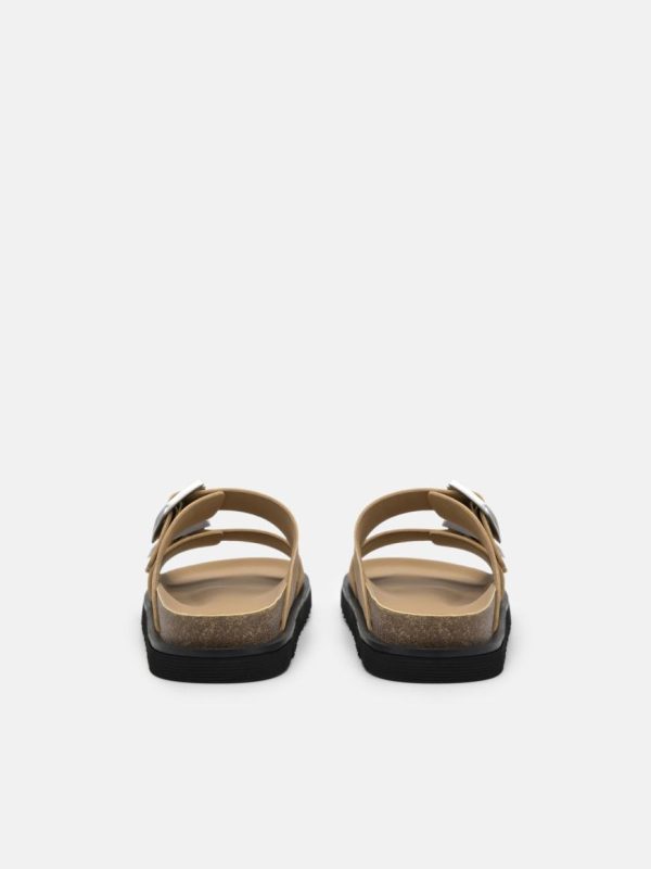 Experience the future with Helix Slide Sandals in sand and make your statement. The double band straps and hardware buckles create a futuristic aesthetic that will elevate any outfit. The lugged sole provides durability and traction, while the padded and contoured footbed ensures maximum comfort during any adventure.