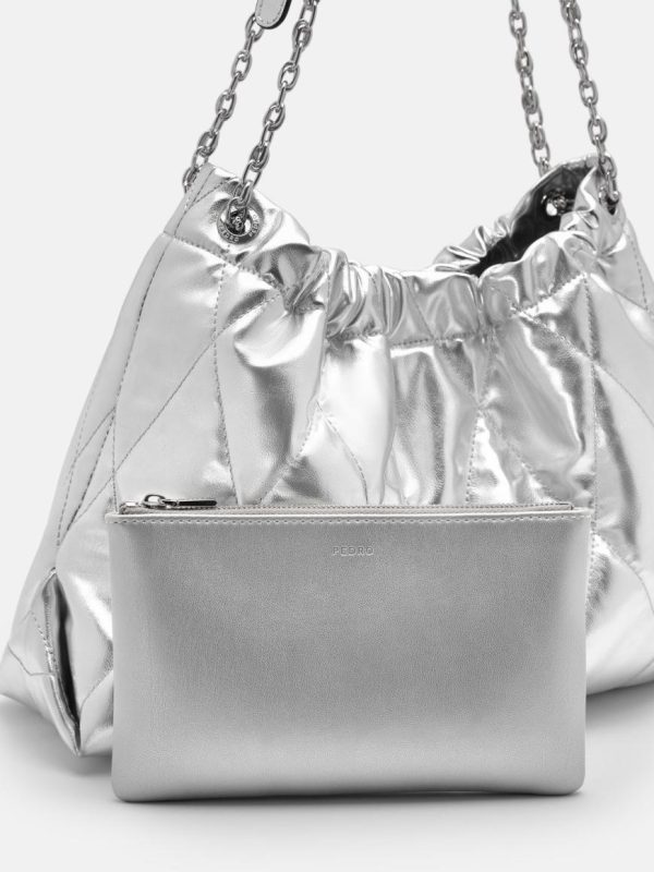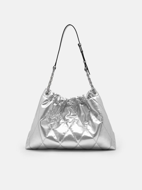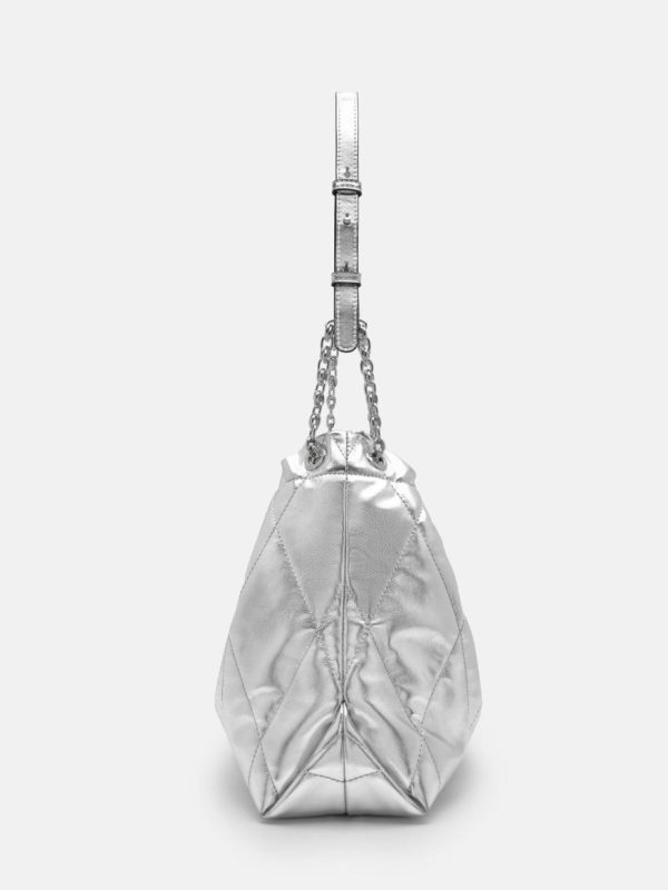 A perfect companion for any casual-chic ensemble, add a dose of modern flair while keeping your essentials organized and accessible with the Kaia Quilted Shoulder Bag in silver. Featuring a spacious interior for essentials and complemented by an additional tonal pouch for organized convenience, quilted design and metallic chainlink accents provide eye-catching appeal and a dose of modern flair.