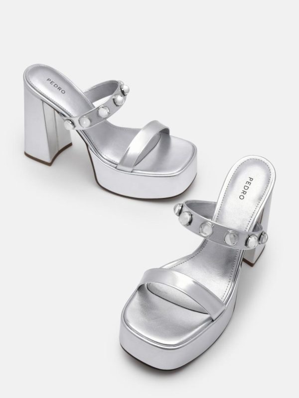 A bold statement piece designed for the modern trendsetter, elevate your style game with the Luma Platform Heel Sandals in silver. Offering height and stability for all-day wear, a double upper strap provides a secure fit while embellishments add a touch of glamorous sparkle, ensuring you stand out whether you’re hitting the city streets or dancing the night away.