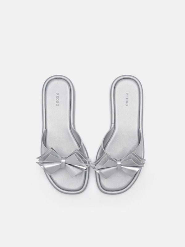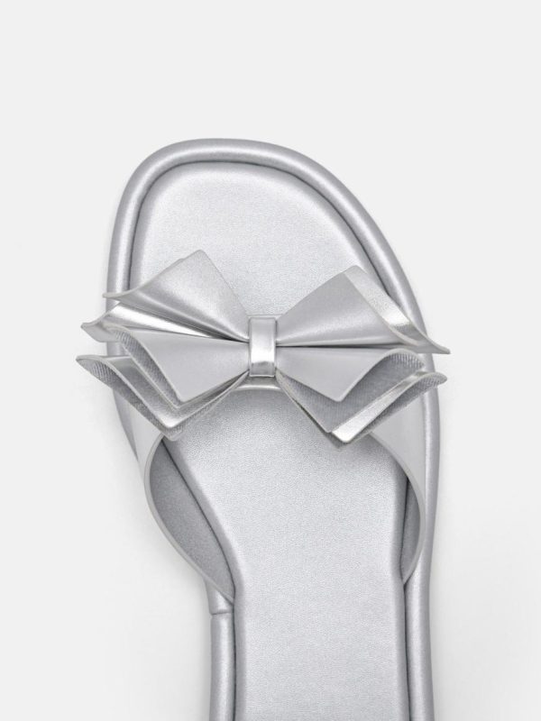 Elevate your style with these stunning silver sandals featuring a contemporary oversized bow detail that adds modern sophistication to any outfit. The Stella Bow Sandals combine fashion-forward design with everyday comfort, thanks to their low-profile sole that provides all-day wearability. Perfect for transitioning from daytime casual to evening elegance, these versatile sandals complement everything from your favorite jeans to summer dresses with effortless charm.