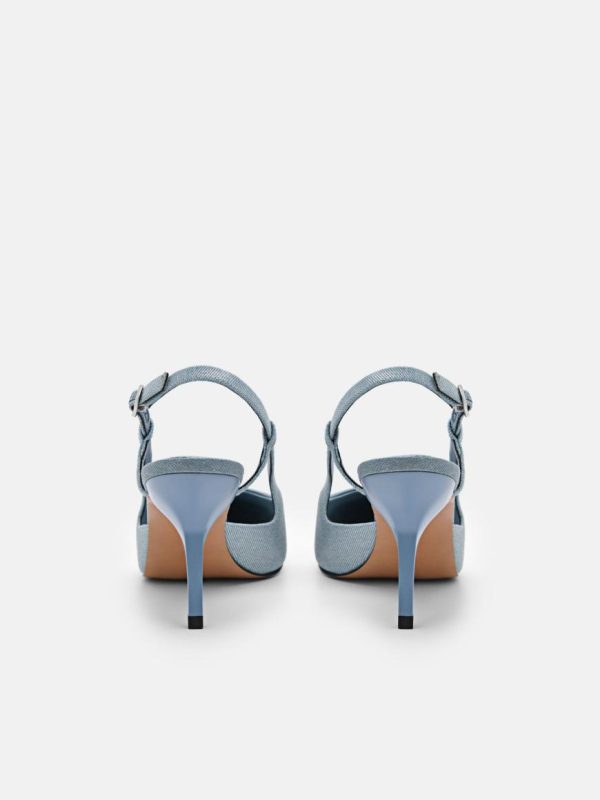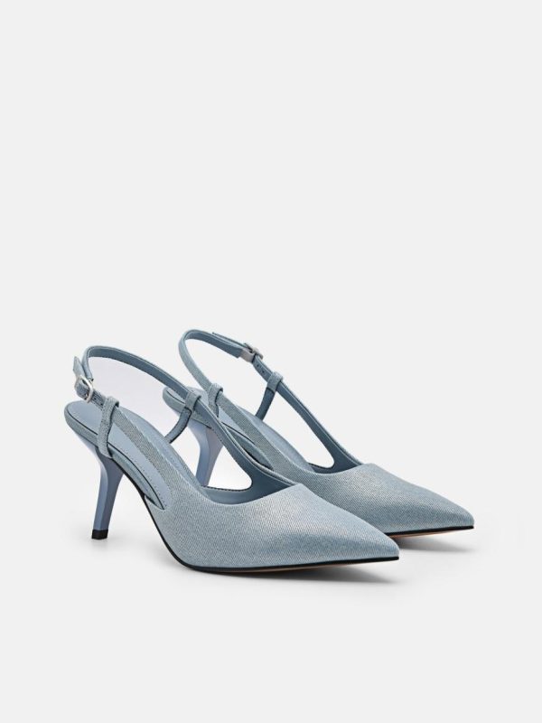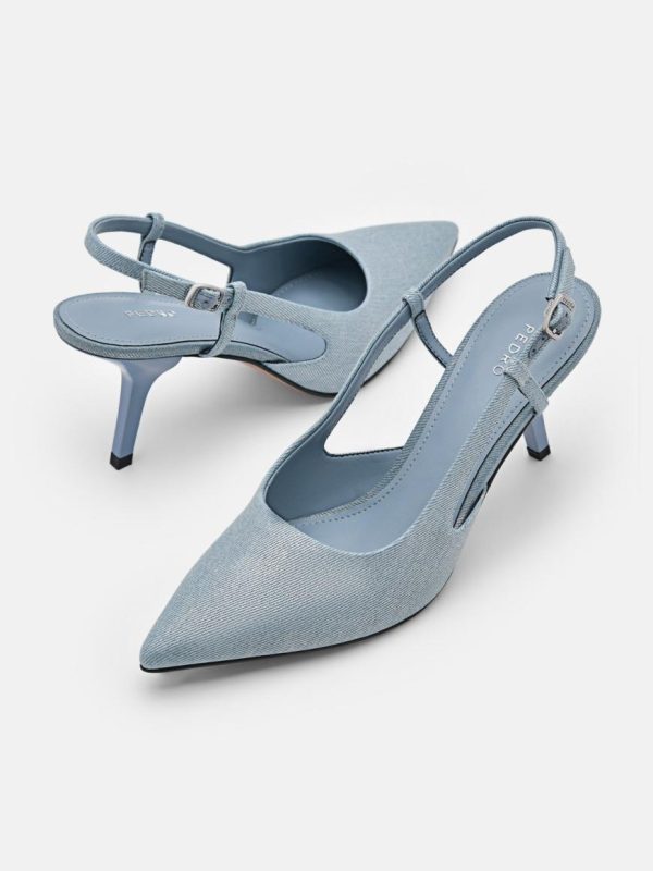 Step into sophistication with the Morraine Slingback Pumps in stunning slate blue. These contemporary heels feature a fashion-forward pointed toe design that makes a bold style statement, while the distinctive flared heel delivers modern elegance with every step. The chic slingback strap ensures a secure, comfortable fit that perfectly blends cutting-edge design with timeless appeal.