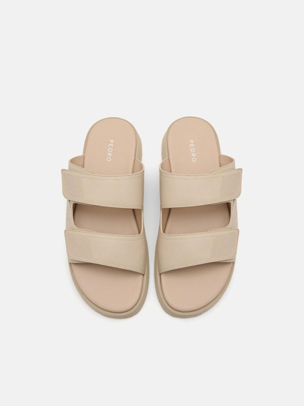 Modern and practical, these Slide Sandals in taupe feature thick double bands, providing both a sturdy fit and a stylish look. The Velcro fastening ensures a secure and comfortable fit, while the padded footbed provides cushioned support, making them ideal for all-day wear. Whether you are running errands or hitting the beach, these sandals are the perfect combination of fashion and function.