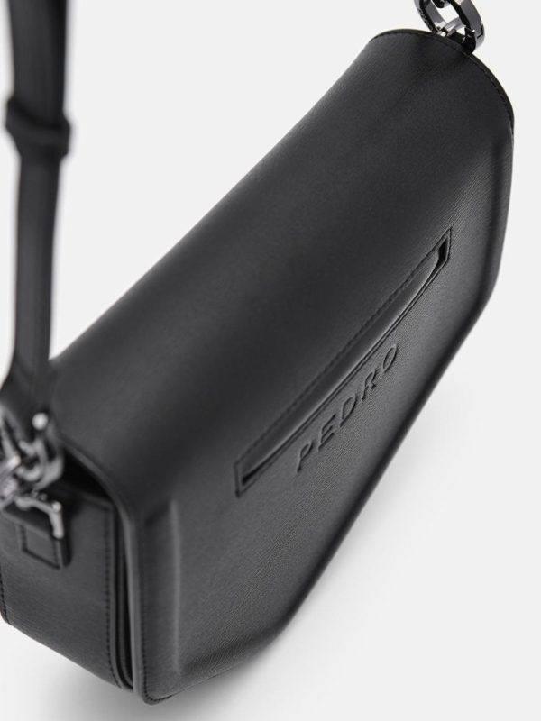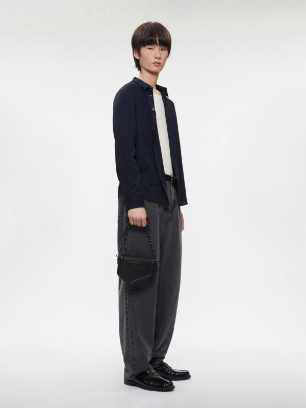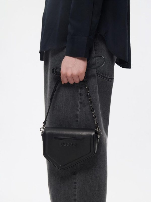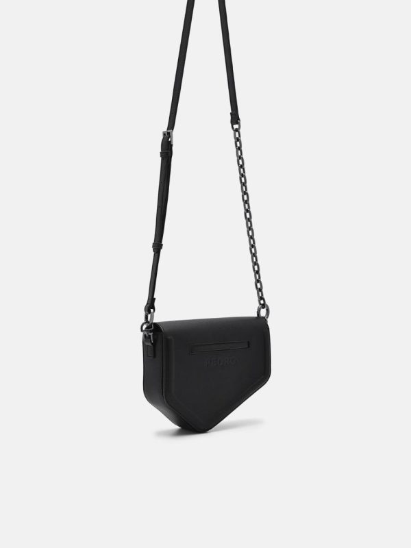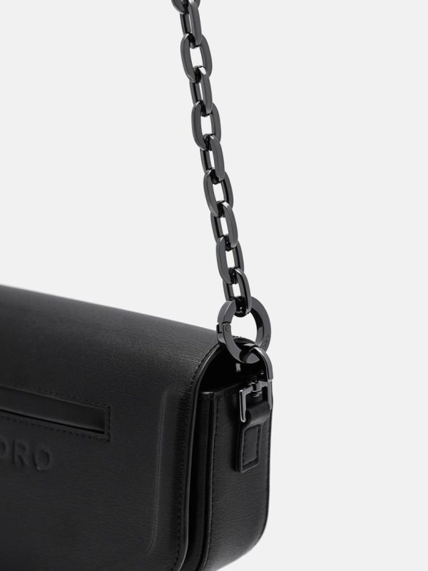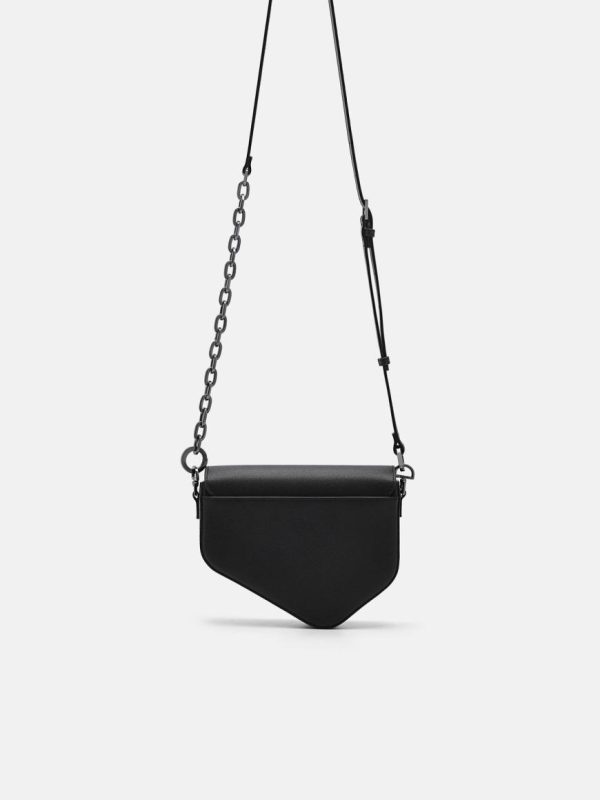 Expertly crafted from premium cow leather, the Taper Leather Mini Sling Bag in sophisticated black delivers a sleek, modern design that combines urban style with everyday functionality. This contemporary interpretation of the classic saddle bag silhouette creates a distinctive look, while the metallic chainlink strap adds a bold, fashion-forward edge. The secure magnetic closure ensures your essentials stay protected, making this the ideal compact companion for the modern man’s on-the-go lifestyle.