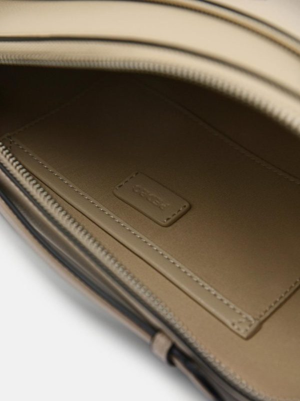 With a sharp and sleek shape featuring clean lines, the Taper Sling Pouch in taupe puts a contemporary twist on the classic saddle bag silhouette. Multiple compartments make it easy to keep your essentials organized, while the adjustable strap ensures a comfortable fit. Whether you are heading on a trip or hitting the town, the Taper Sling Pouch is the perfect way to add a touch of modern style to any outfit.