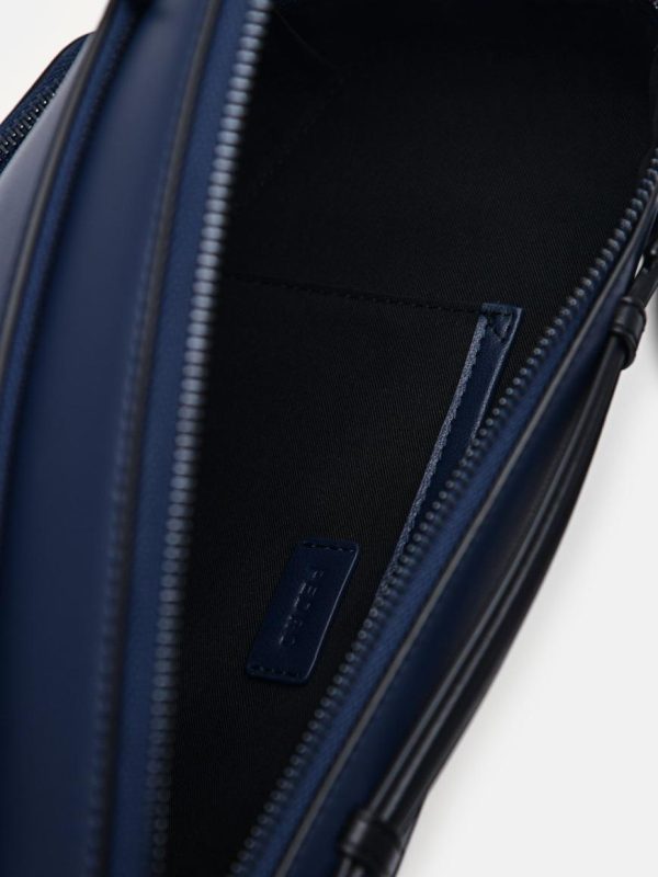 Featuring a sharp, streamlined design with clean architectural lines, the Taper Sling Pouch in navy delivers a contemporary update to the classic saddle bag silhouette. Multiple organized compartments keep your daily essentials neatly arranged, while the adjustable strap provides personalized comfort throughout your day. Perfect for travel adventures or urban exploration, this sling pouch adds modern sophistication to any casual outfit.