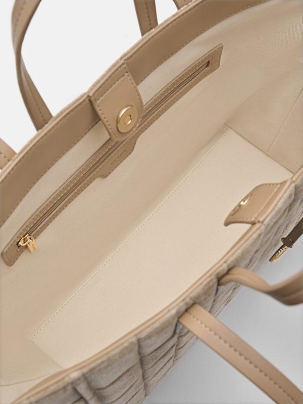 A modern essential for those on the go, the Lucia Tote Bag is crafted with a quilted construction for a textured look that adds a touch of elegance to any ensemble. Finished with chic medallion hardware and a magnetic closure, its versatile design features double handles for hand or shoulder carry, providing convenience and style.