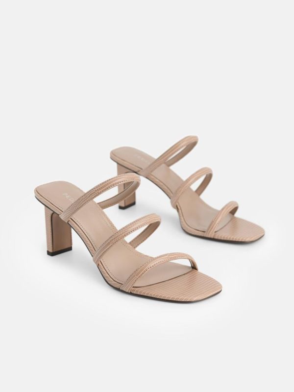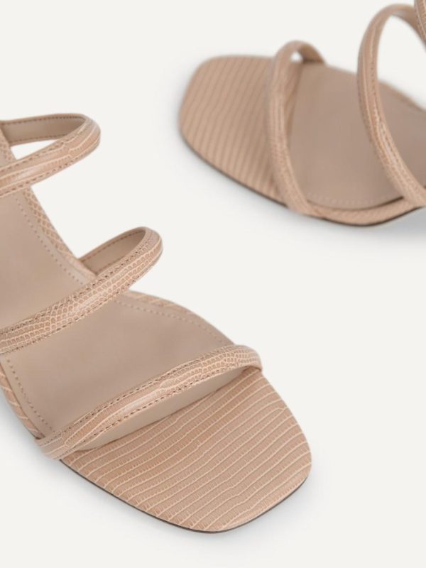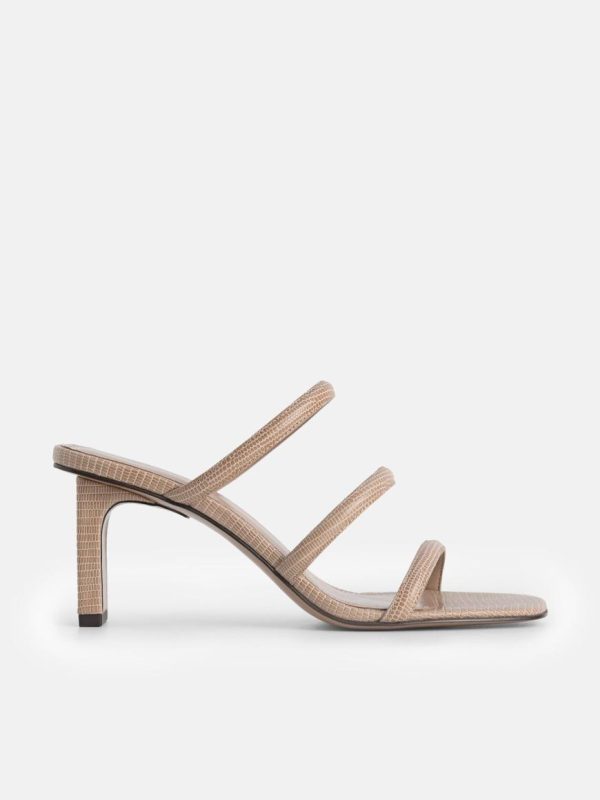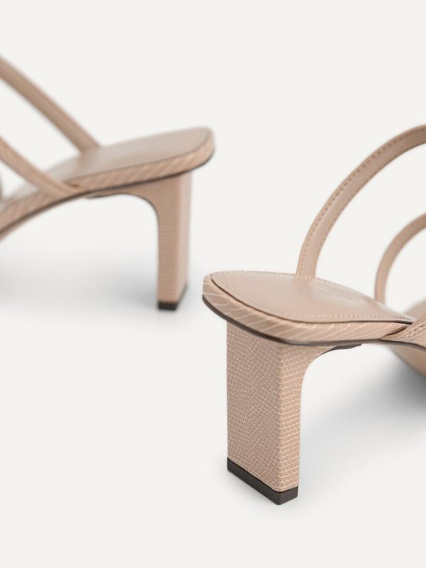 Everyday taupe strappy heels with a reptilian and edgy twist, great for a special occasion or when you want to up your style a notch.