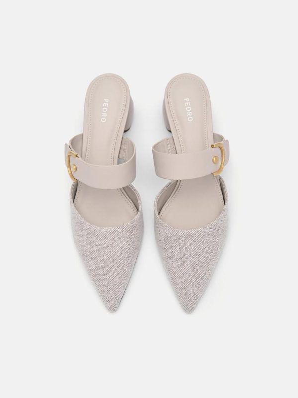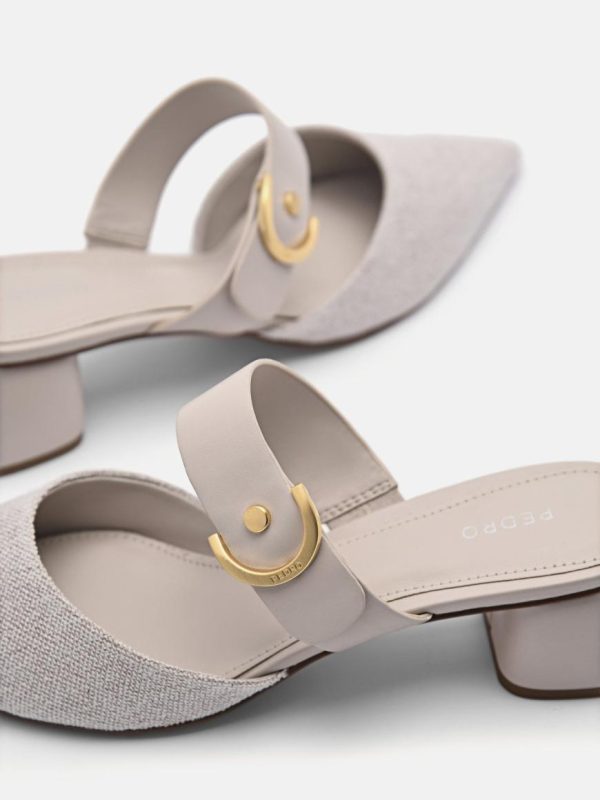 Accent a fave ensemble with the classic Yasmin Leather Heel Mules in taupe. Crafted with a linen upper, the sharp silhouette accented by metal hardware makes for a versatile add, while the trend-trendy heel brings an eye-catching touch.