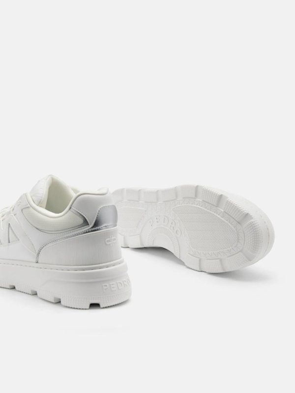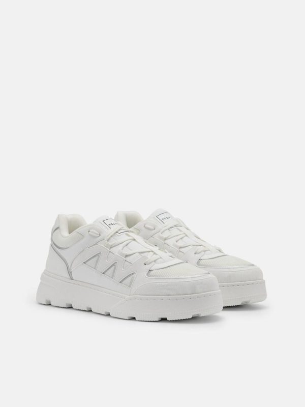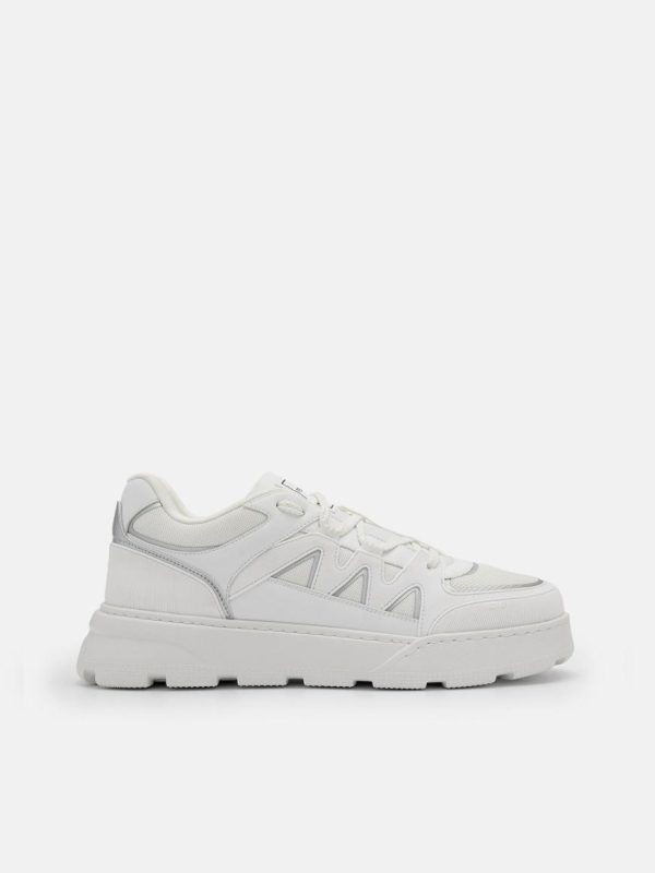 Elevate your everyday style with the White Arc Sneakers, where contemporary design meets exceptional comfort. These premium sneakers feature a lightweight mesh and microfiber upper that ensures breathability throughout your day, while the rugged lugged outsole delivers superior traction and modern streetwear appeal. The signature puffy tongue and chunky silhouette create a distinctive look that transitions effortlessly from athletic activities to urban adventures. Style them with your favorite athleisure wear for an active vibe or pair with denim for a casual downtown look.