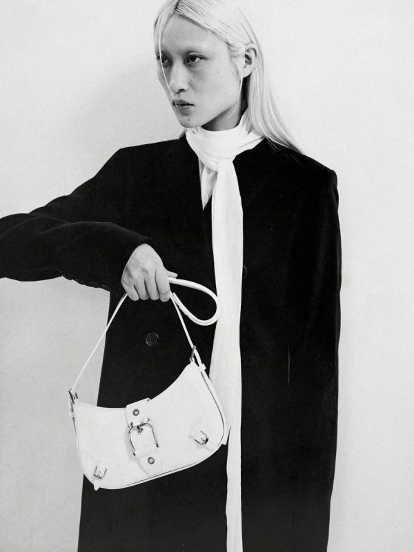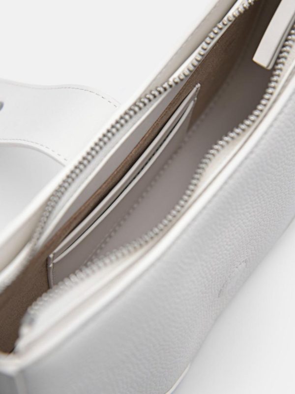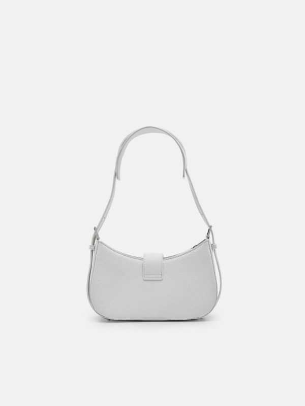Elevate the everyday to the extraordinary with the Helix Leather Shoulder Bag in white, a combination of craftsmanship with bold design elements. A supple calf leather construction lends an air of luxury to any ensemble, while metallic hardware embellishments catch the light and draw the eye. Reinforced corners ensure durability and longevity, while the oversized centre buckle adds a touch of drama and intrigue, and a removable shoulder strap provides styling versatility.